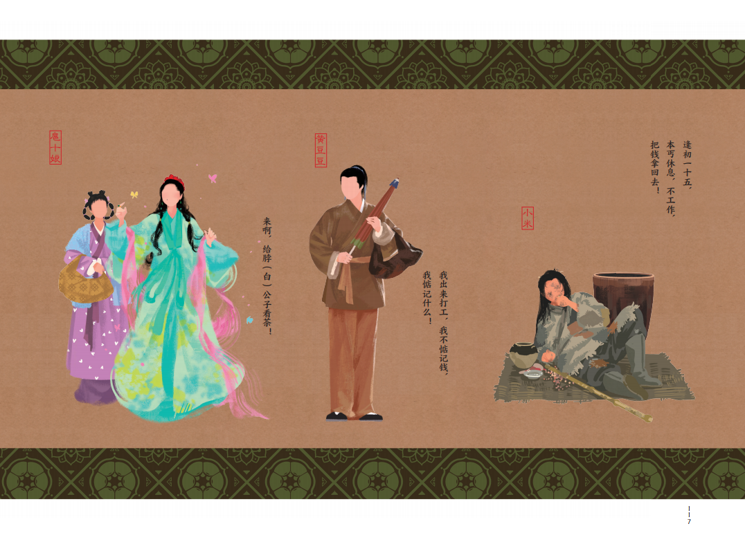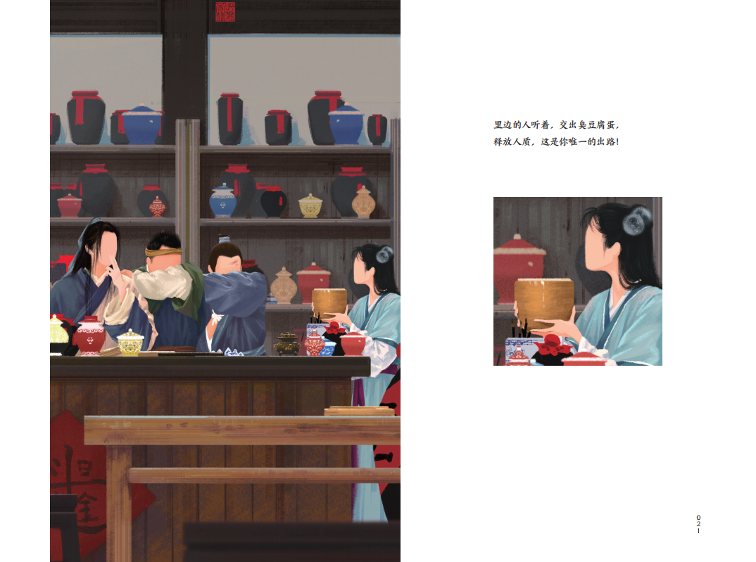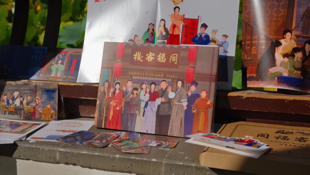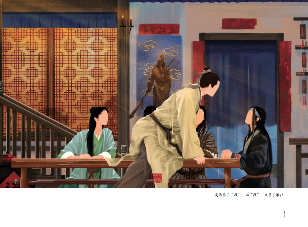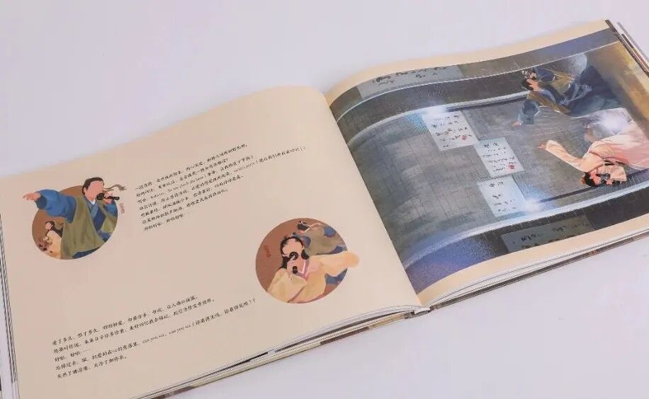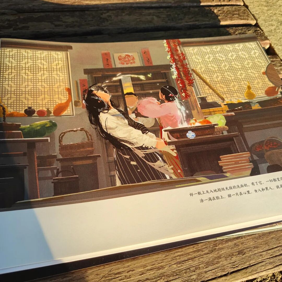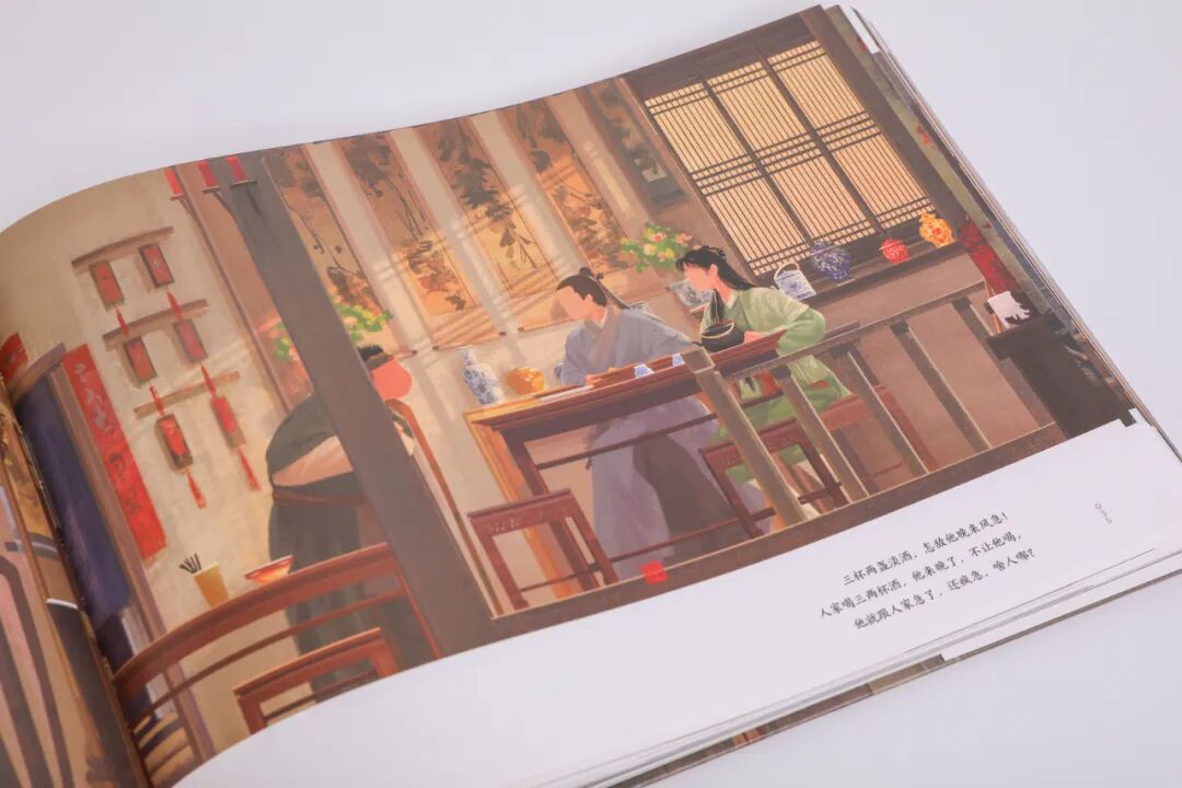 選用橫版大16開的開本,精裝雙封,鎖線裝訂,畫集可平攤閱讀,書名燙金工藝,典雅大氣。外封和內(nèi)封插畫,均選用腐竹朋友最熟悉的同福客棧大門口場景,外封有人,內(nèi)封無人,內(nèi)文再相逢,埋有一個層層遞進、久別重逢的設(shè)計巧思在內(nèi)。