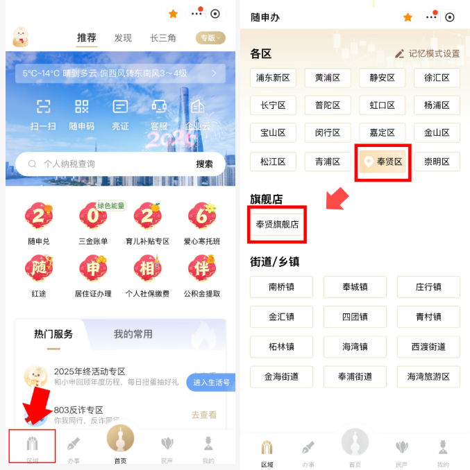 ① 打開“隨申辦”APP(微信小程序、支付寶小程序)