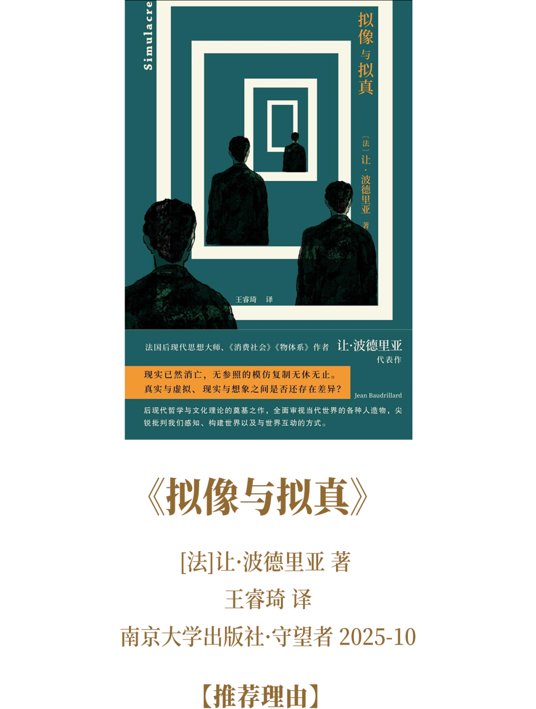 你還能想象沒有電影電視、網(wǎng)絡廣告、超市與游樂園的世界嗎?當現(xiàn)代生活被“擬像”所主導、數(shù)字化披著彩衣呼嘯而至之時,《擬像與擬真》如利刃般劃破虛飾,單刀直入地宣告了“現(xiàn)實”的終結。在這個“無參照的模仿復制”無休無止的超級現(xiàn)實世界中,擬像不再映射現(xiàn)實,而是先于并定義了現(xiàn)實。身處AI誘發(fā)意義內(nèi)爆的當下,本書不僅是后現(xiàn)代思想的基石,更是我們在符號狂歡中刺破幻象、反思真相的清醒劑。