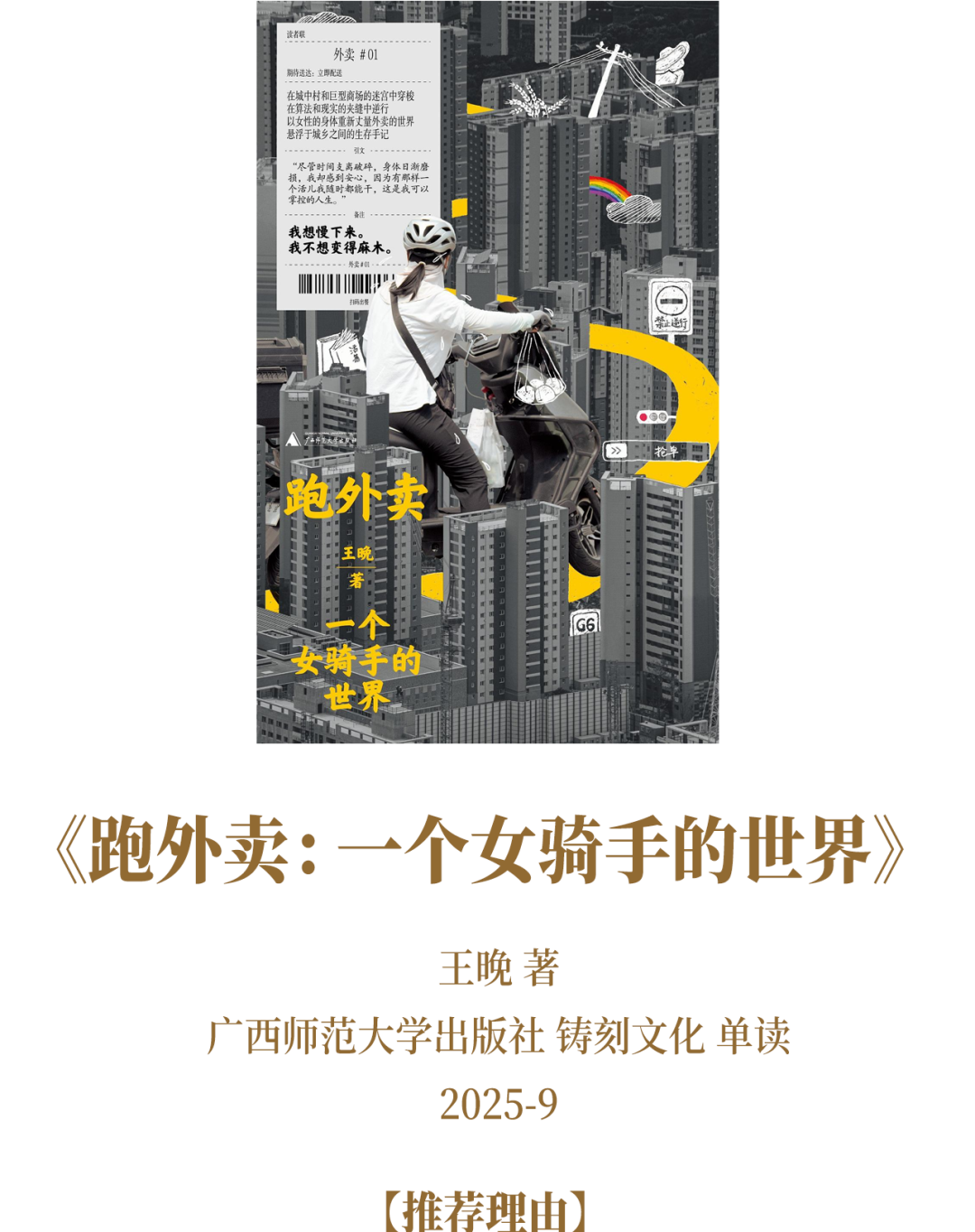 《跑外賣》以“出走”為核心,撕開日常的沉悶面紗。書中沒有華麗的遠方敘事,卻在街頭巷尾的闖蕩、陌生境遇的碰撞中,照見現(xiàn)代人對自由的渴望與對自我的追問。每一次“跑出去”都是對內(nèi)卷的掙脫,每一段邂逅都是成長的注腳。文字質(zhì)樸卻有力量,讓讀者在他人的闖蕩中,聽見自己內(nèi)心想要突破邊界的回響。