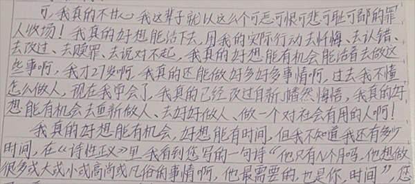 吳謝宇在看守所期間寫的親筆信(部分)截圖