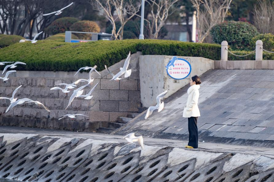 白鷗振翅環(huán)繞,引游客駐足,冬日的靈動(dòng)與溫柔在此刻輕輕相擁。劉晶 攝
