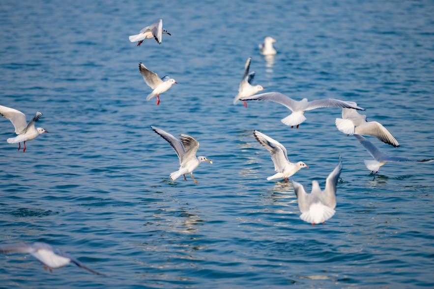 碧海漾波,白鷗振翅穿風(fēng),紅爪輕點(diǎn)浪尖,群鳥(niǎo)翩躚里,冬日的鮮活撞進(jìn)眼底。劉晶 攝