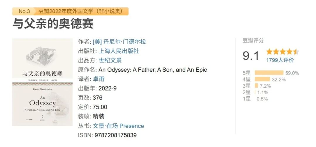 《與父親的奧德賽》以荷馬史詩為鏡,講述父親的故事,該書自2022年9月翻譯出版以來,至今保持豆瓣9.1分的高口碑,收獲廣泛共鳴。書中多次提到“健談又愛開玩笑”的外祖父,令人好奇。丹尼爾·門德爾松的另一部重要非虛構(gòu)作品《追尋六百萬中的六人》正是講述他的母親和外祖父那邊——耶格家的故事,尋找耶格家里那消失的六個人的故事。