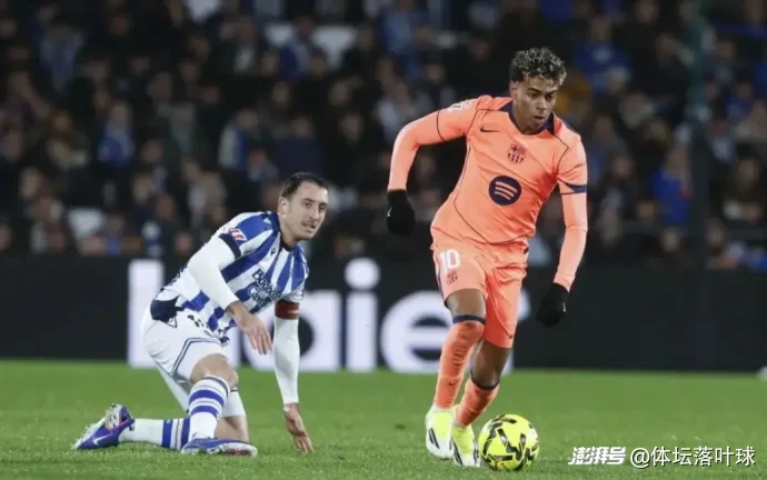 第32分鐘,格德斯右路精準(zhǔn)傳中,奧亞薩瓦爾后點(diǎn)凌空爆射破門,皇家社會(huì)終于取得領(lǐng)先。而在上半場(chǎng)補(bǔ)時(shí)階段,亞馬爾在禁區(qū)內(nèi)被踢倒獲得點(diǎn)球,卻又因越位在先被取消。