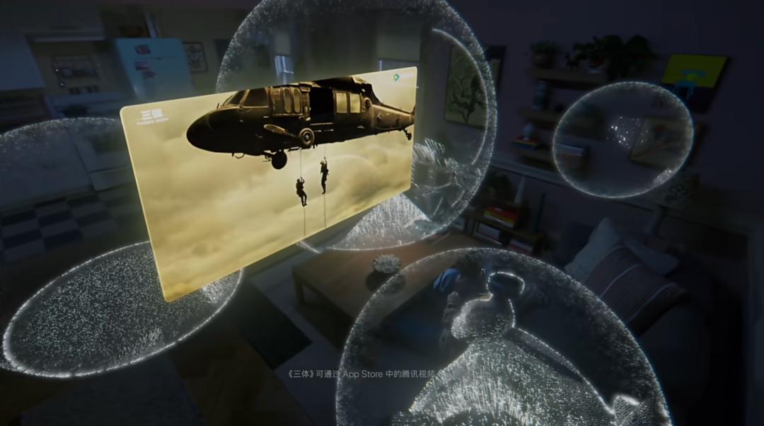 2024年,Apple發(fā)布Vision Pro時(shí),特別選擇了一段《三體》電視劇中的場景作為畫面演示,紅岸基地雷達(dá)、古箏行動,結(jié)合視覺與聽覺效果,讓用戶仿佛置身劇中場景,親歷那個(gè)文明在毀滅邊緣掙扎的窒息瞬間。與此同時(shí),Google在其Gemini全球宣傳片中,也選擇《三體》作為展示其核心技術(shù)能力的載體,問了Gemini關(guān)于三體世界的物理問題。