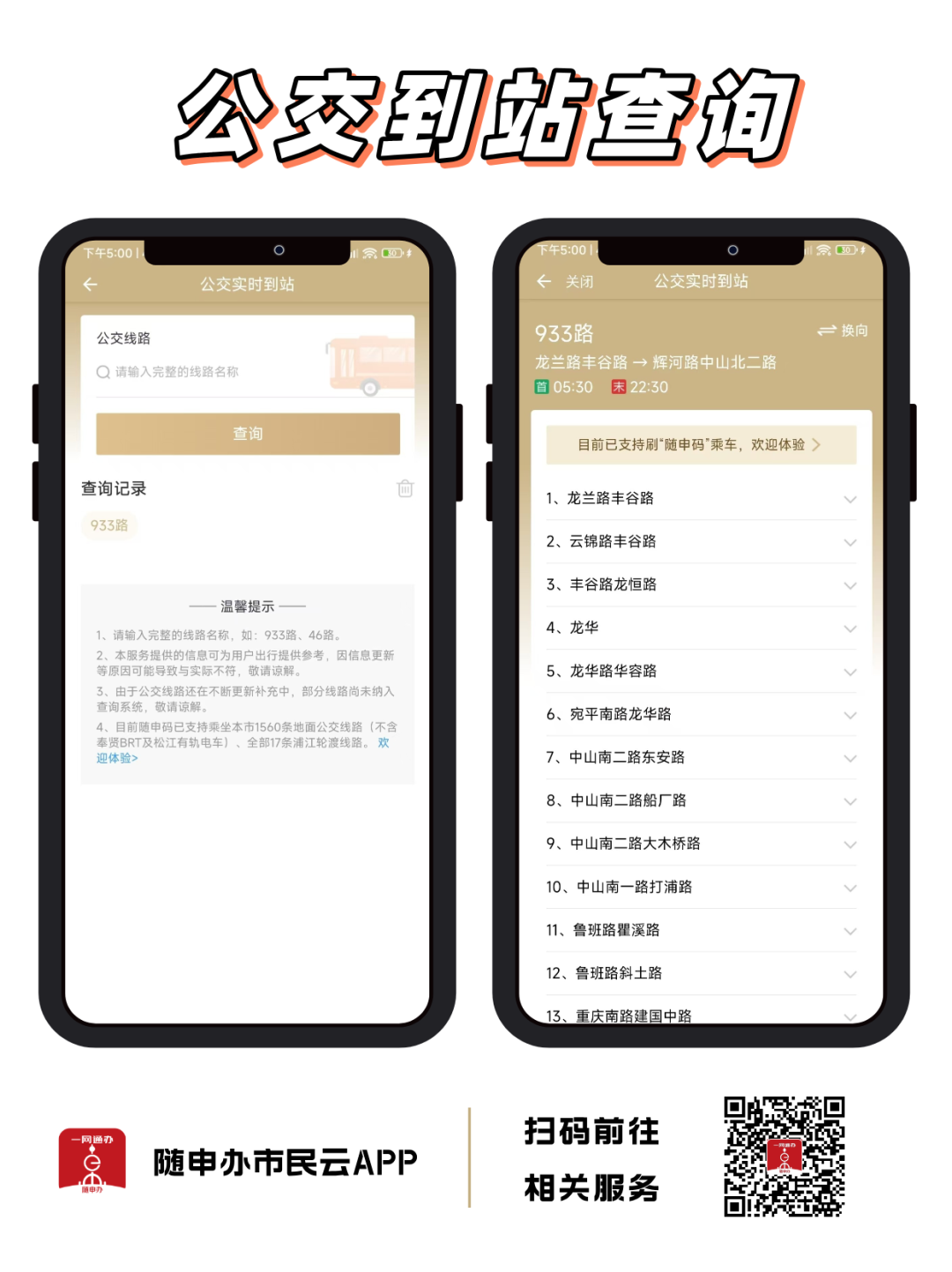 等公交車,有沒(méi)有讓你心煩意亂?悄悄告訴你一個(gè)出行小幫手,讓全上海的公交車盡在掌握中!打開(kāi)“隨申辦市民云”APP搜索并點(diǎn)擊【公交到站查詢】,或者掃描下方二維碼即可進(jìn)入服務(wù)。