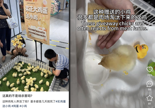 然而,在超市等公共空間不合時宜地出現(xiàn)的贈品小雞,無意中為密不透風的現(xiàn)代養(yǎng)殖業(yè)制造了一道縫隙。本應在養(yǎng)殖場度過短暫一生的雞,因而浮現(xiàn)在了個人生活和公共討論之中。