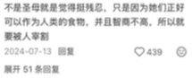 有趣的是,對非人動物展現(xiàn)出同情,對有些人來說不僅難以理解,還是一種需要在公共討論中去調侃、質疑乃至詆毀的錯誤情感。在社交平臺的許多寵物雞視頻下,不時會出現(xiàn)一些有意調侃“殺雞”、“吃雞肉”的不太友善的評論。而若是有人展現(xiàn)出對于包括雞在內的農場動物的生存條件的同情,或是對是否應該吃雞肉表示困惑,則常會遭至或明或暗的攻擊。 “圣母心”是其中最常見的一種修辭,這個詞在近年來被廣泛地用于嘲弄世界各地的動物保護、環(huán)保主義和素食主義實踐,用以指控其不可理喻、虛偽甚至包藏禍心。因此,在這些有關都市養(yǎng)雞和養(yǎng)雞業(yè)現(xiàn)狀的討論中,發(fā)言者往往要提前自辯“不是圣母”,才開始分享其真實感受到的對家畜的同情。
