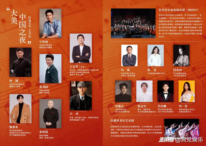 晚會由“源起?萬物生暉、生長?人間色譜、歸真?大美永恒”三個篇章組成,表演者來自中國音樂學院、國家歌劇舞劇院、北京音樂加交響樂團,以及北京大學教師所組成的詠歌合唱團等,還有體育冠軍、知名歌手、作家、主持人及專家教授等百余位嘉賓的參與。群星璀璨,只為山河之美相聚。