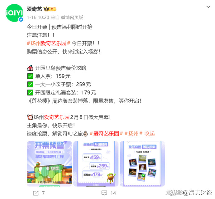 愛奇藝正嘗試讓IP版圖從線上屏幕延伸至線下實(shí)體空間。2026年1月16日,愛奇藝首個(gè)線下樂園項(xiàng)目預(yù)售開票,并定于2月8日正式開園。這個(gè)位于江蘇揚(yáng)州的樂園,以國(guó)創(chuàng)IP加前沿科技為核心定位,設(shè)計(jì)了包含全感劇場(chǎng)、光影互動(dòng)空間在內(nèi)的體驗(yàn)版塊,呈現(xiàn)了《唐朝詭事錄》《狂飆》《蒼蘭訣》《蓮花樓》等頭部劇集的現(xiàn)實(shí)場(chǎng)景,試圖將用戶在觀看內(nèi)容時(shí)產(chǎn)生的情感連接,轉(zhuǎn)化為可觸摸、可參與的實(shí)體體驗(yàn)。