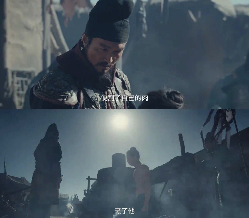 錢弘俶出使中原,長(zhǎng)了見識(shí)閱歷。首先就是親身體驗(yàn)到北方亂世的悲慘,親眼見到人吃人的慘劇。全劇一開始所展示的慘烈,是告訴觀眾們,這是亂世。但是錢弘俶是沒有看到的。所以,錢弘俶必須補(bǔ)上這一課,把最黑暗的一面直接懟到他的臉上,為追求太平埋下伏筆。