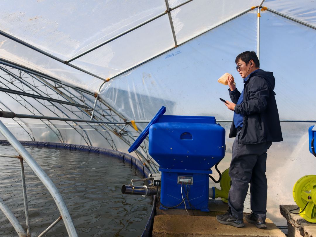 走進(jìn)南潯區(qū)和孚鎮(zhèn)雙福橋村的鱸魚(yú)養(yǎng)殖基地,95個(gè)直徑25米的陸基圓桶整齊排列,每個(gè)桶中游動(dòng)著2萬(wàn)余尾加州鱸魚(yú)?!拔覀?yōu)轺|魚(yú)打造了一個(gè)‘四季如春’的家,在這里,溫度全程可控?!闭憬瓥|裕生物科技有限公司副總經(jīng)理孫華指著覆蓋在圓桶上的棚膜介紹道,即便在嚴(yán)冬,水溫仍可保持在適宜鱸魚(yú)生長(zhǎng)的區(qū)間?!芭锬つ苁顾疁靥嵘?到8攝氏度,確保鱸魚(yú)在冬季也能正常生長(zhǎng)?!?/p>