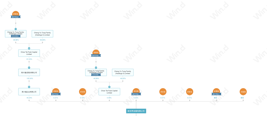 目前,新世界發(fā)展由香港最富有的家族之一鄭氏家族控制。據(jù)Wind資訊數(shù)據(jù)顯示,鄭氏家族直接或間接共持有新世界發(fā)展逾45%的股份。