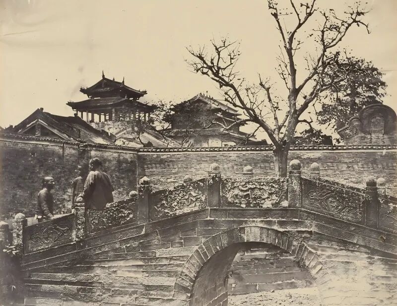 近景是南海學宮泮池和石橋,遠景是五仙觀的禁鐘樓和通明閣/華芳影像藝術(shù)空間供圖