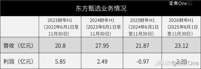 2023財(cái)年上半財(cái)季,憑借董宇輝等頭部主播帶來的流量紅利,東方甄選一度錄得5.85億元凈利潤(rùn),看似風(fēng)光,卻也為后續(xù)埋下隱患;進(jìn)入下一財(cái)年同期,凈利潤(rùn)迅速下滑至2.49億元。此后,隨著2024年7月頭部主播董宇輝的離職及“與輝同行”賬號(hào)的剝離,東方甄選受到巨大沖擊,2025財(cái)年上半財(cái)季首次出現(xiàn)接近1億元的凈虧損。
