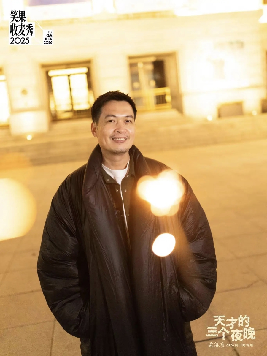 在專場(chǎng)前幾天,主播小河見到了梁海源,他因?yàn)楦忻奥曇粲悬c(diǎn)啞,但每個(gè)字都清楚,有時(shí)玩了一個(gè)梗,會(huì)把自己笑趴在桌子上。梁海源從《今晚80后脫口秀》走出來,身上標(biāo)簽不少:演員、編劇、總編劇。但兩個(gè)小時(shí)聊下來,你記住的不是這些頭銜,而是一個(gè)人溫和的質(zhì)地:清醒,有種在喧囂中自成節(jié)奏的穩(wěn)定感。