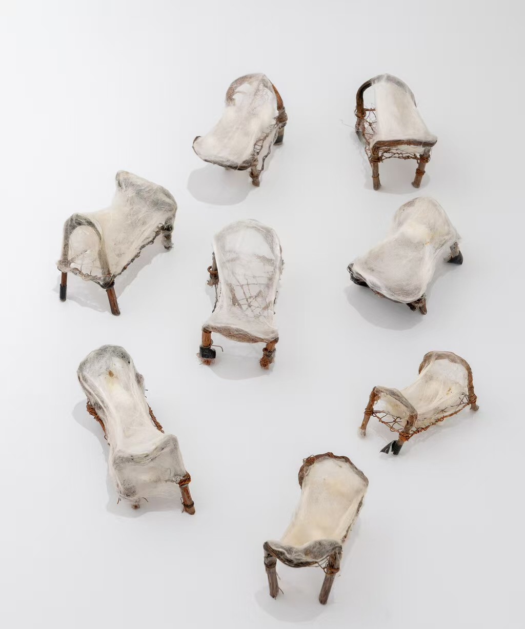 梁紹基 《床自然系列 No. 10》,1993,燒焦銅絲、絲、8Pieces