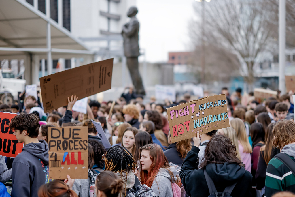 當(dāng)?shù)貢r(shí)間2026年1月30日,美國(guó)佐治亞州迪凱特,迪凱特高中學(xué)生參加反ICE罷課和抗議集會(huì)。視覺中國(guó) 圖
