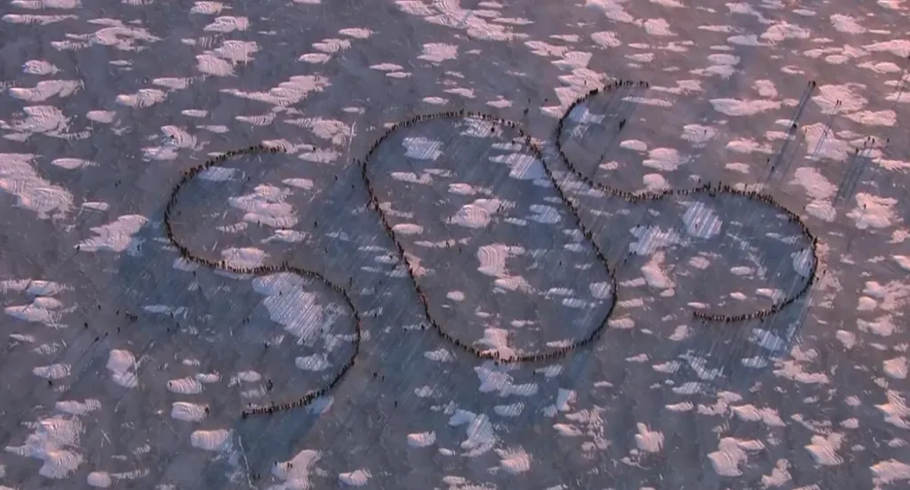 隨著一場強(qiáng)力的北極寒流逼近,明尼阿波利斯的氣溫在1月驟降至零下。當(dāng)?shù)貢r(shí)間1月30日下午,抗議者們聚集在該市Bde Maka Ska湖被冰封的湖面上,拼出了“SOS”字樣,向世界發(fā)出求救信號(hào)。湖面上的溫度只有約零下20攝氏度。