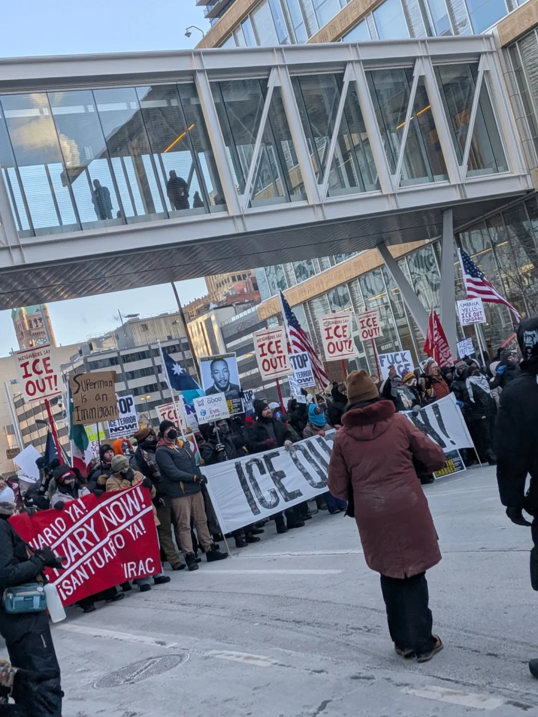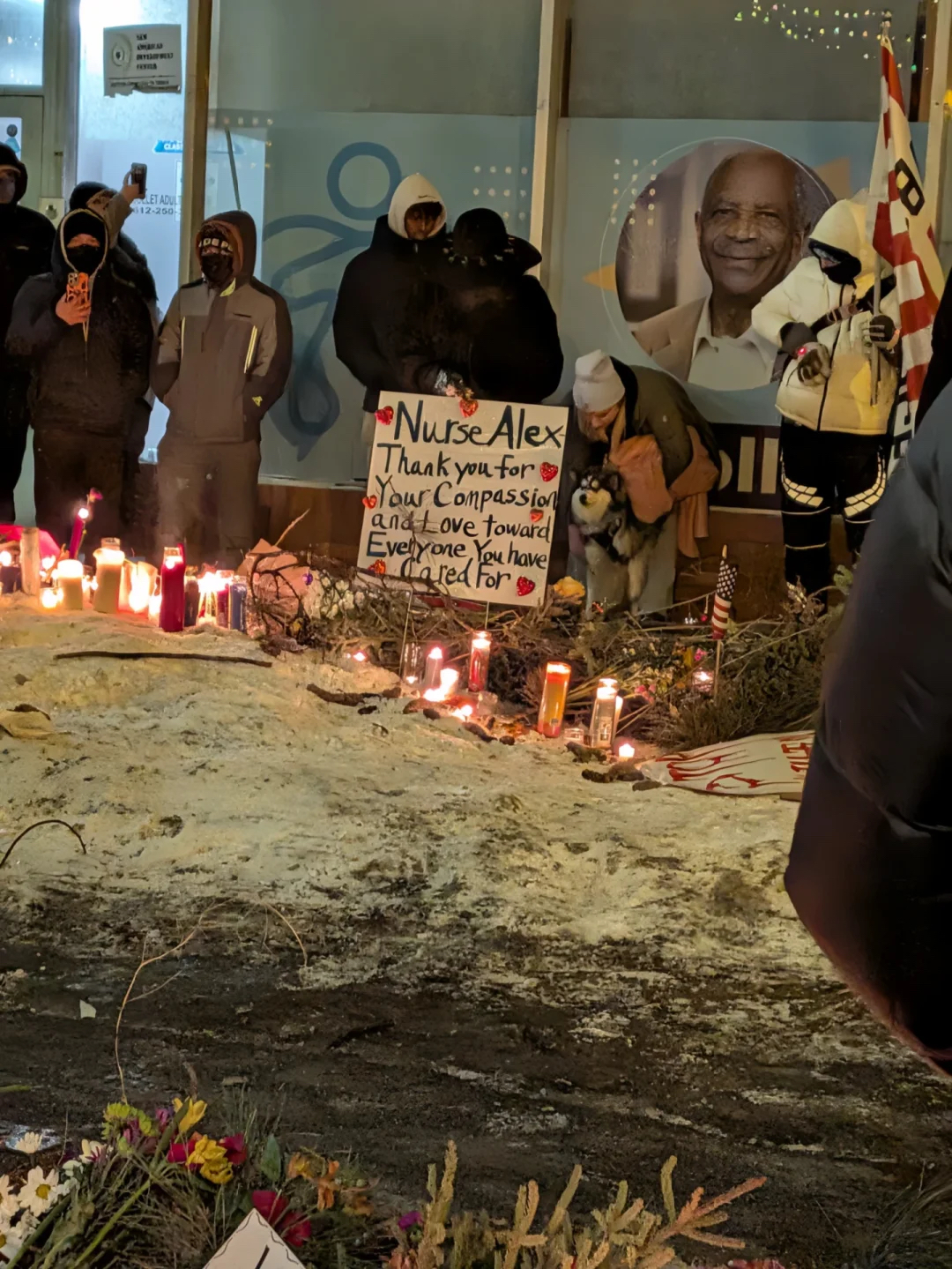 在古德遭槍擊的兩天后,伊萬首次前往古德的守夜地點(diǎn)進(jìn)行悼念。一周后,他與朋友前往ICE所進(jìn)駐的亨利·惠普爾主教聯(lián)邦大樓。在僅有的兩個(gè)出入口,包括他在內(nèi)的抗議者們向進(jìn)出的執(zhí)法車輛高聲抗議,并為每一輛鳴笛聲援的汽車歡呼。