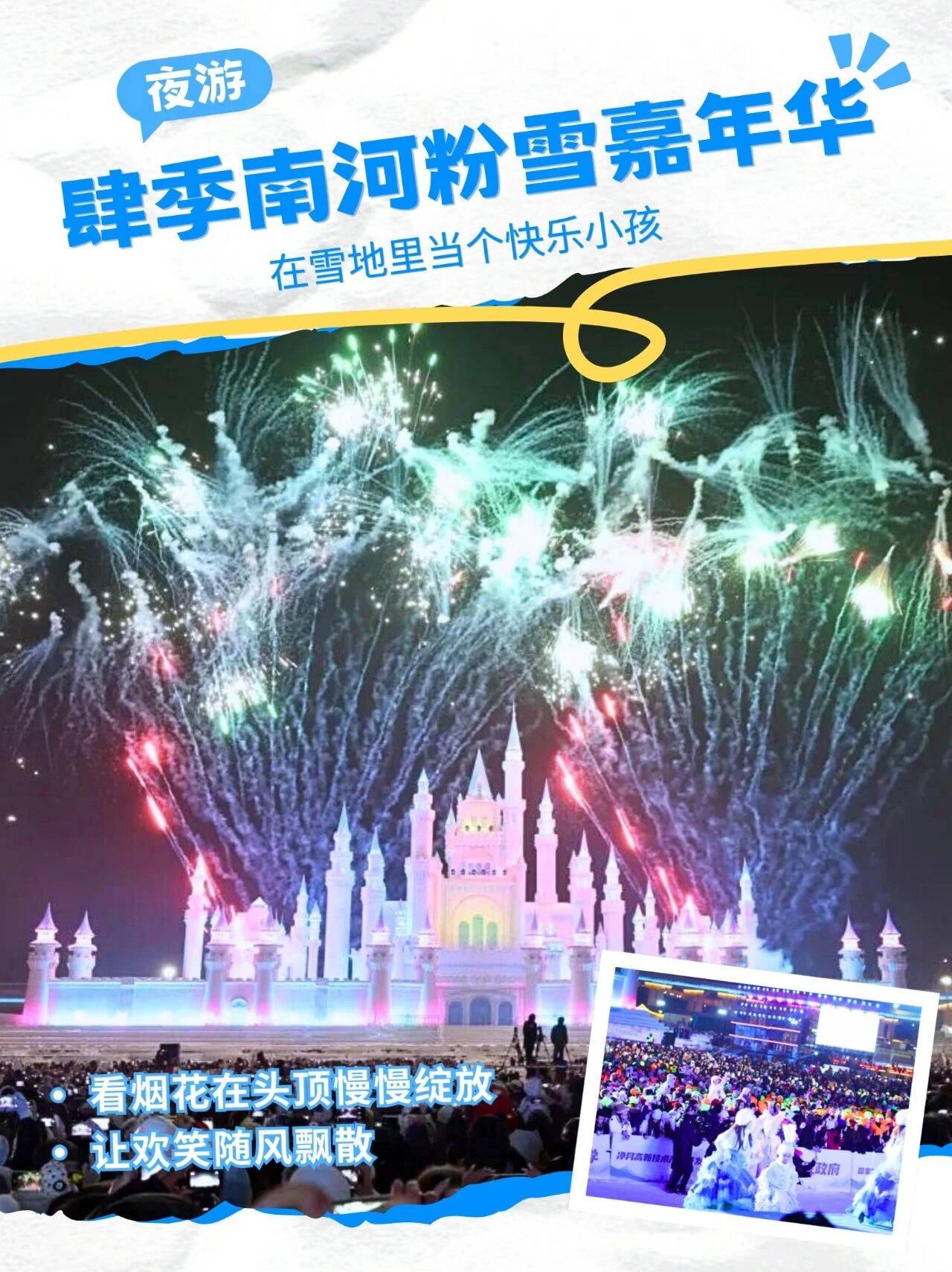 夜幕降臨,肆季南河粉雪嘉年華被燈光點(diǎn)亮。坐著雪圈在雪道飛馳,或是靜靜欣賞一場(chǎng)絕美煙花,每個(gè)瞬間都像童話。天雖冷,心里卻暖烘烘的~?? 旅途的“充電”時(shí)刻