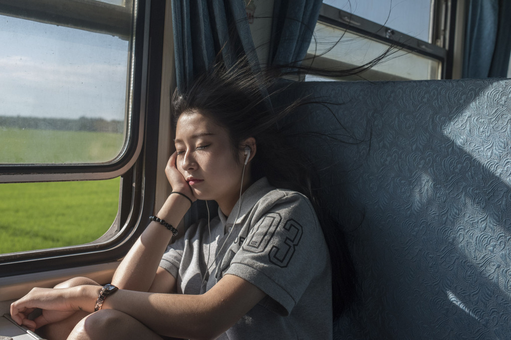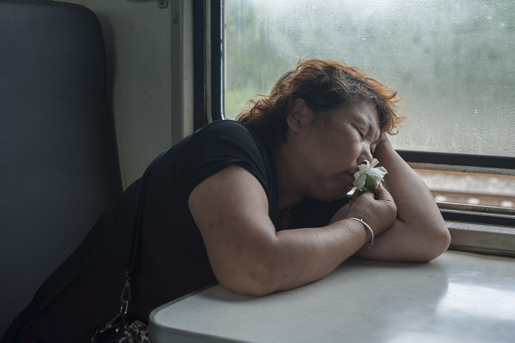 錢(qián)海峰的作品《綠皮火車(chē)》曾摘得連州國(guó)際攝影年展的大獎(jiǎng)?!?014年后的‘綠皮火車(chē)’已經(jīng)和更早之前不太一樣了,一些車(chē)次統(tǒng)一涂成了綠色。而且,隨著公路和私家車(chē)的普及,坐‘綠皮火車(chē)’的人也比以前少很多,也沒(méi)什么年輕人?!卞X(qián)海峰講到了這些年拍攝的觀察,“隨著短視頻的流行,很多人都會(huì)注意到鏡頭,但我在拍的過(guò)程中被拒絕得相對(duì)較少,我會(huì)打招呼,詢(xún)問(wèn)是否可以拍。《邊地》與《綠皮火車(chē)》兩個(gè)系列是同時(shí)創(chuàng)作的,后者是短暫流動(dòng)的空間,前者則是我旅行下車(chē)后所見(jiàn)。兩者雖是兩個(gè)系列,但實(shí)際上是連續(xù)的?!?/p>