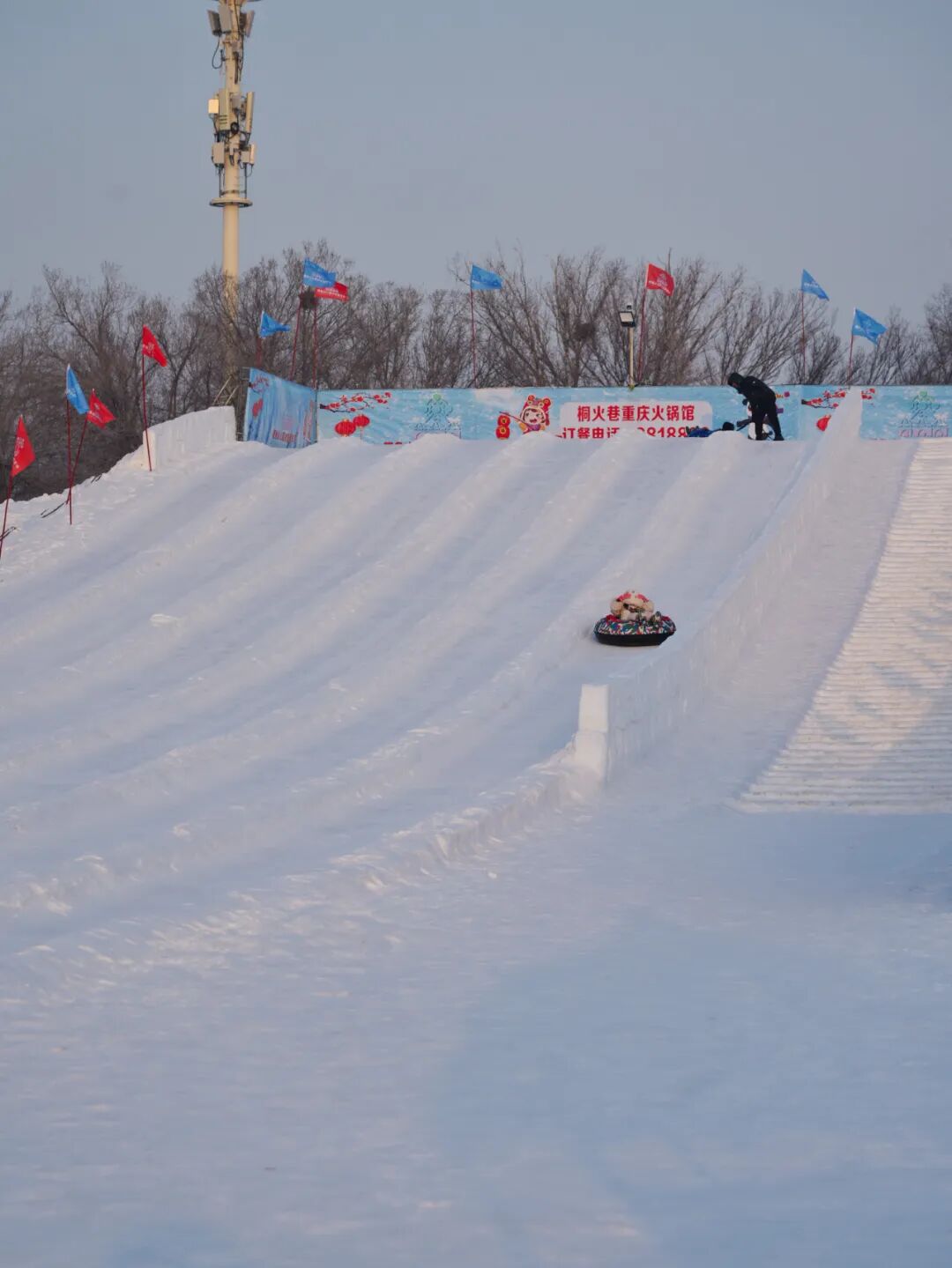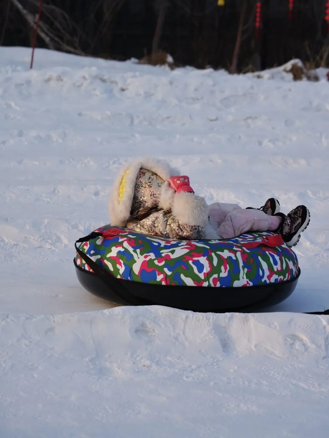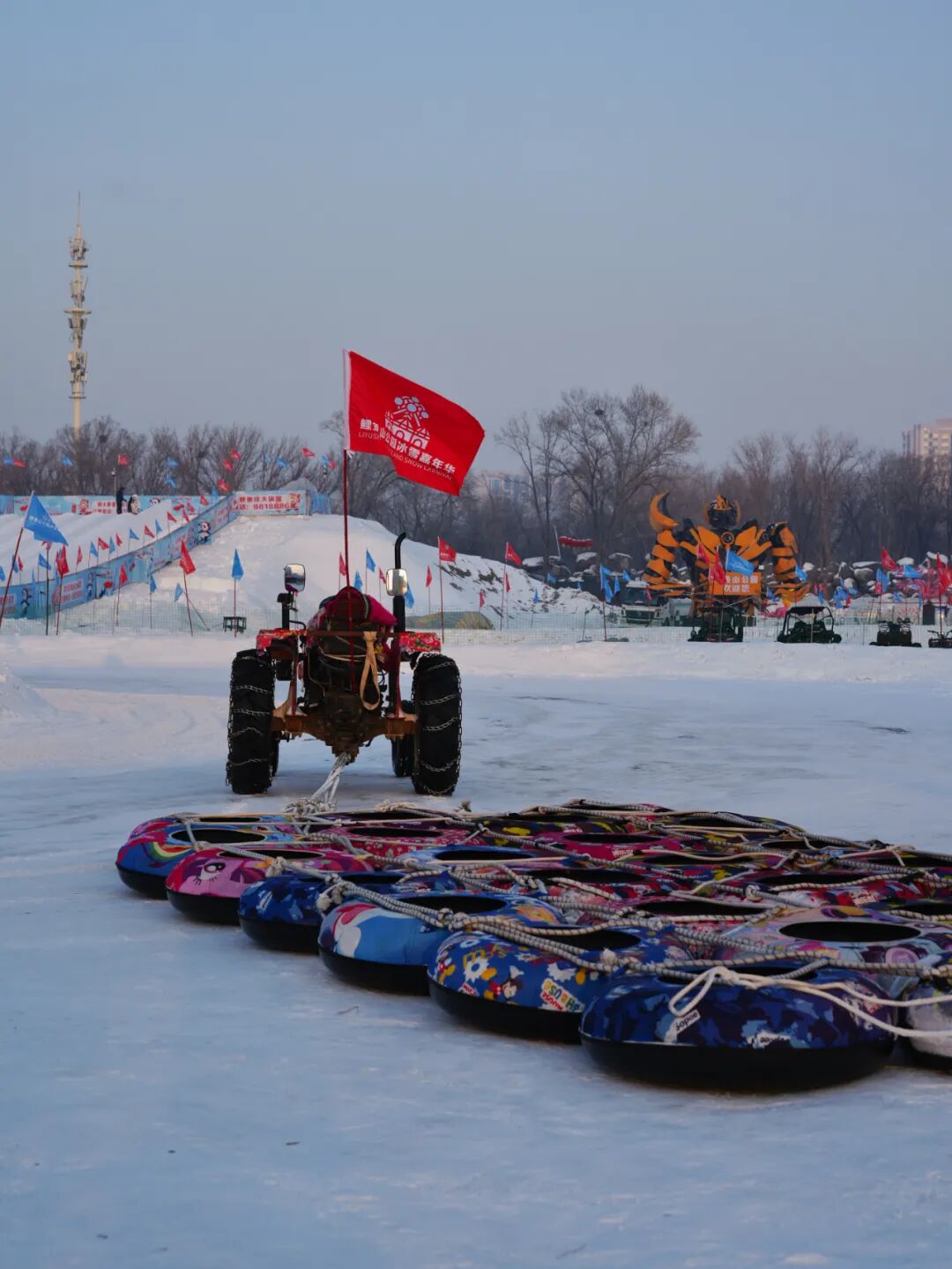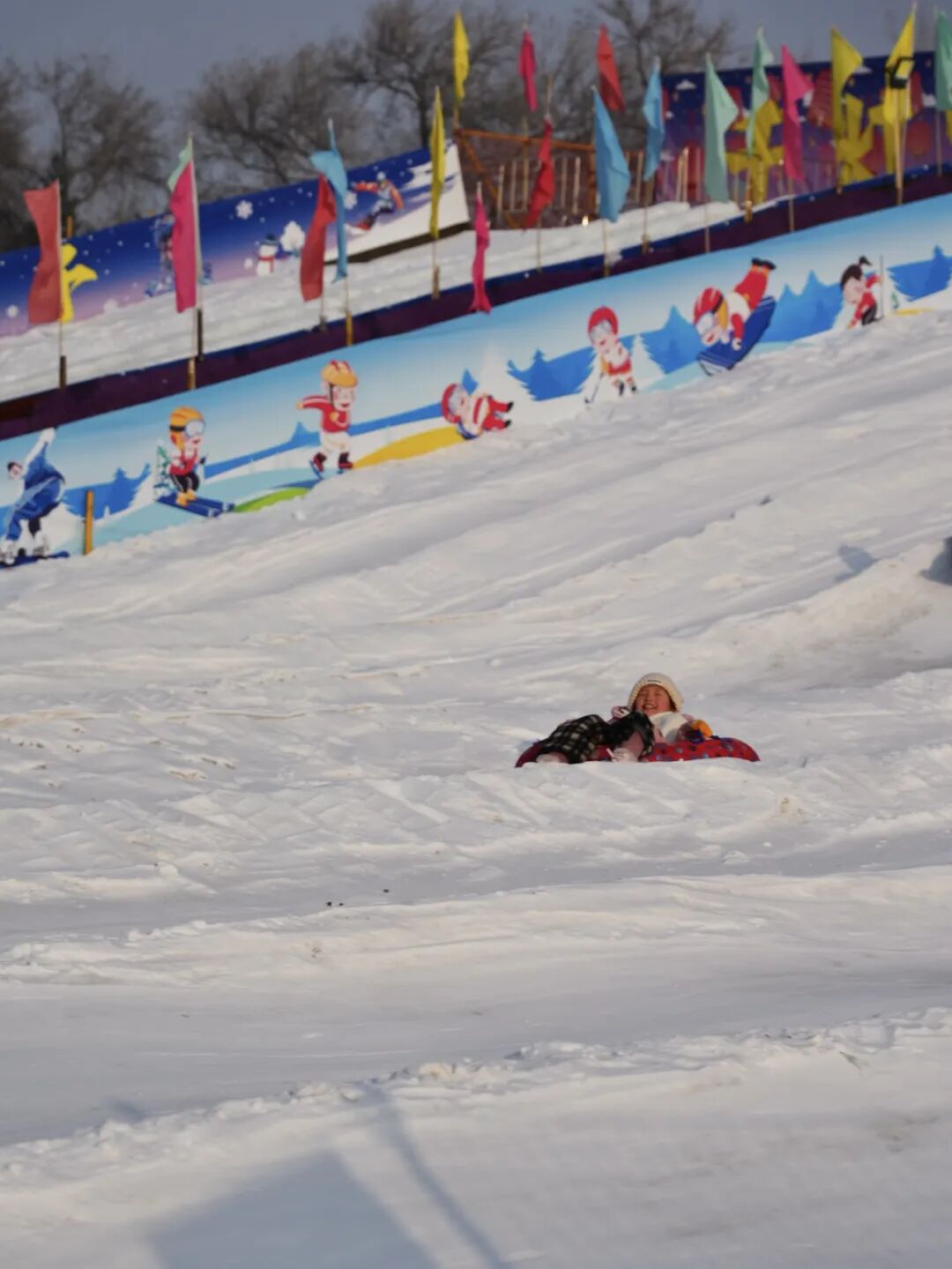 這里的無動(dòng)力項(xiàng)目偏多,有雪地龍舟、雪地自行車等。