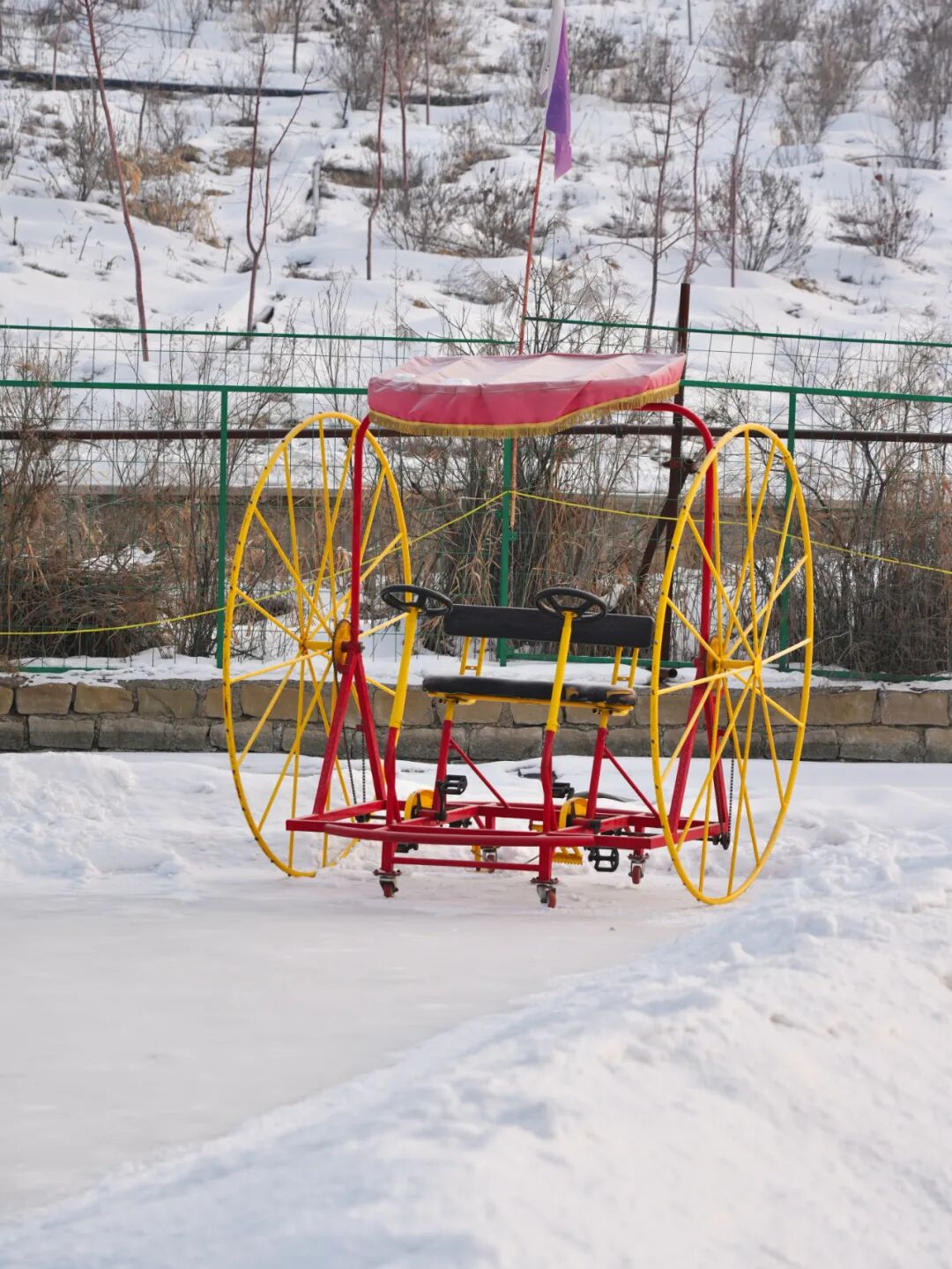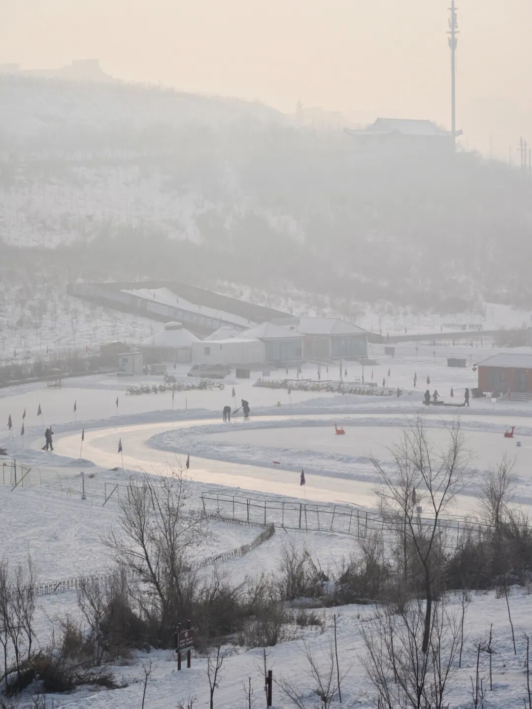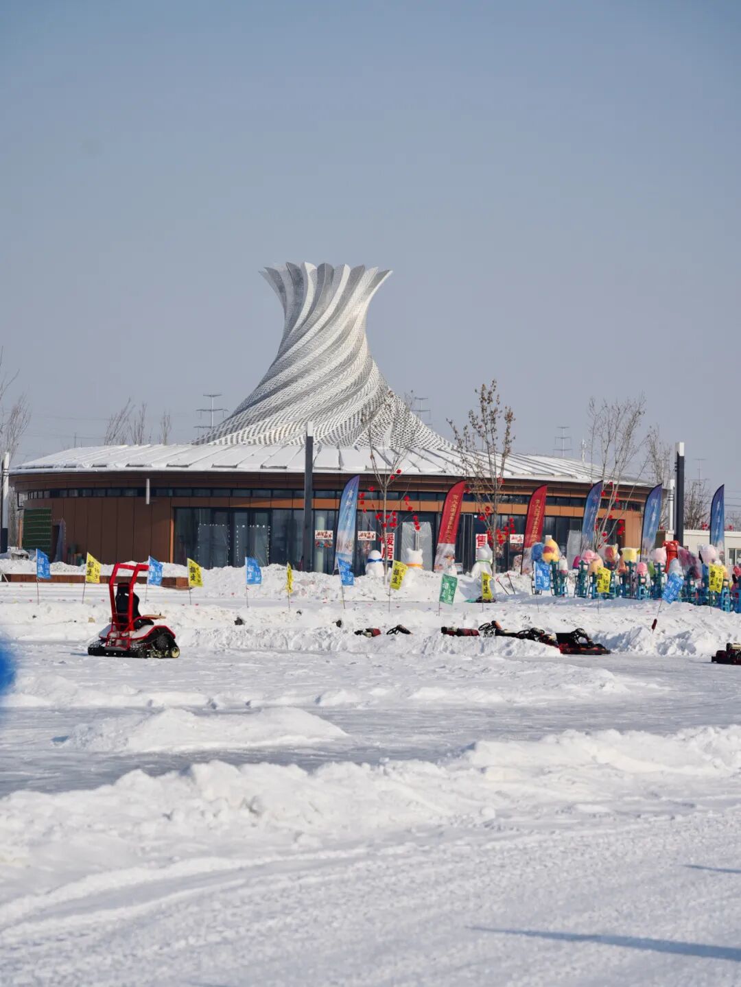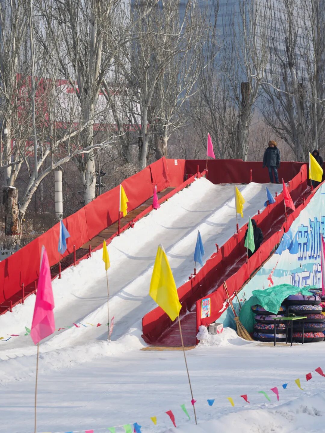 這里的無動(dòng)力項(xiàng)目偏多,有雪地龍舟、雪地自行車等。