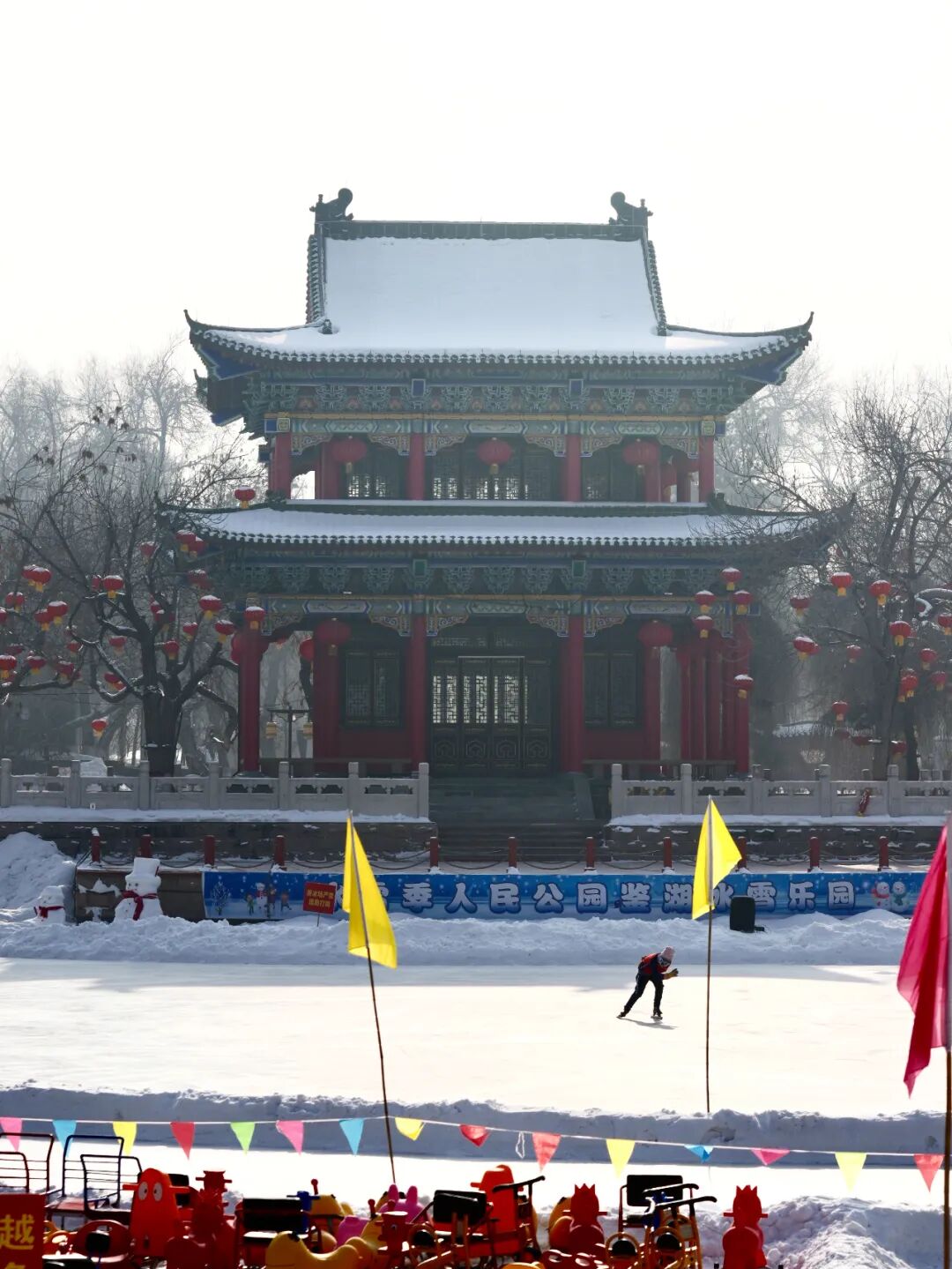 冰道很長,圍繞湖心亭蜿蜒展開。