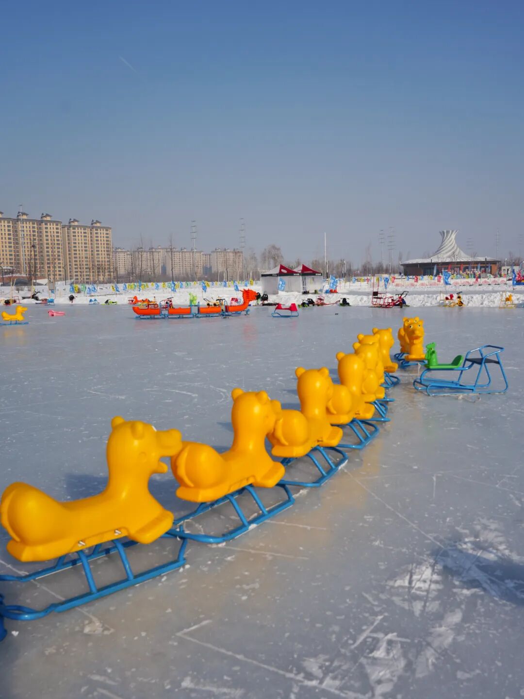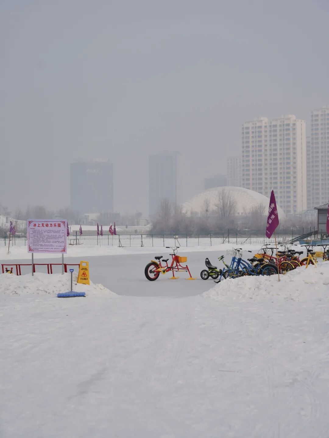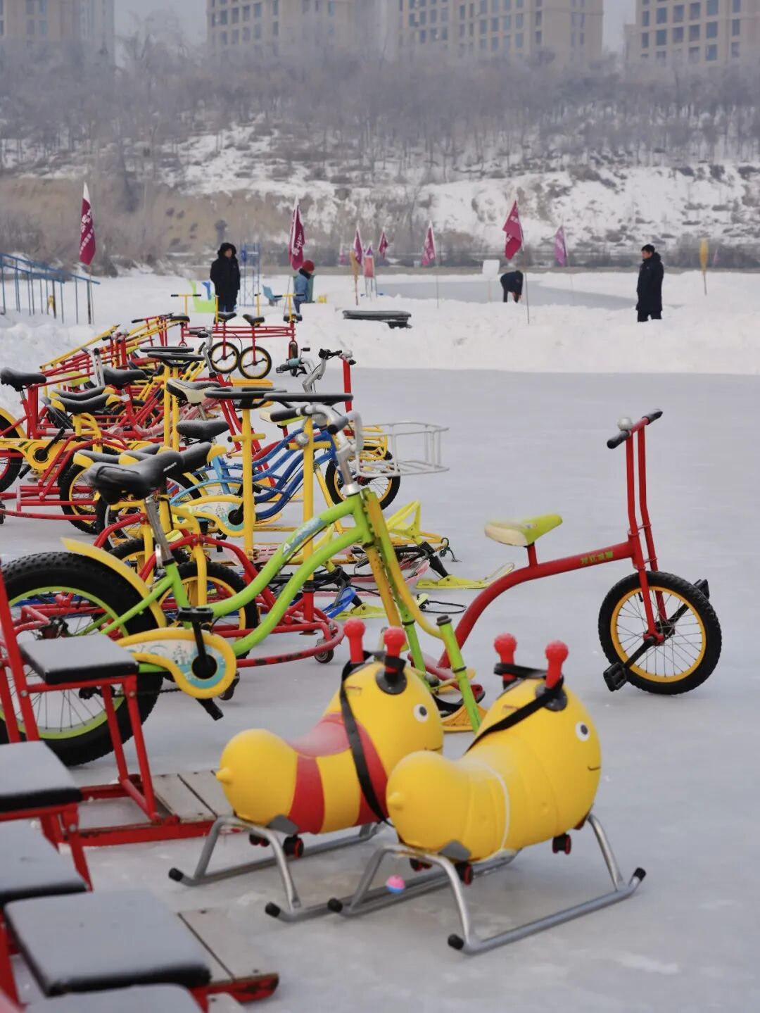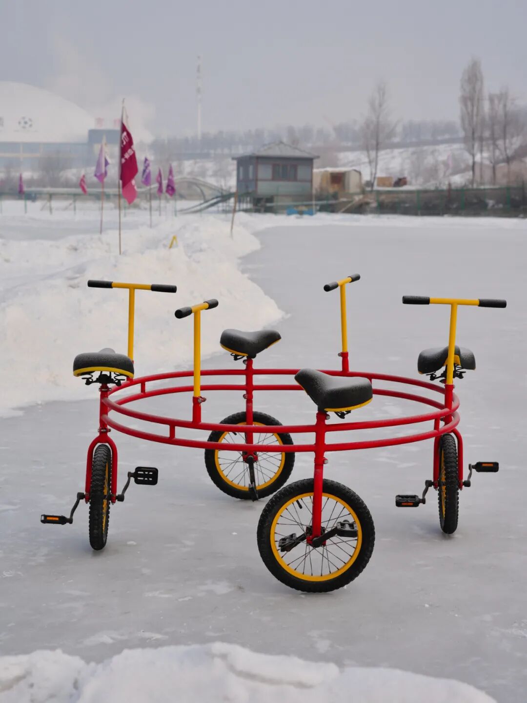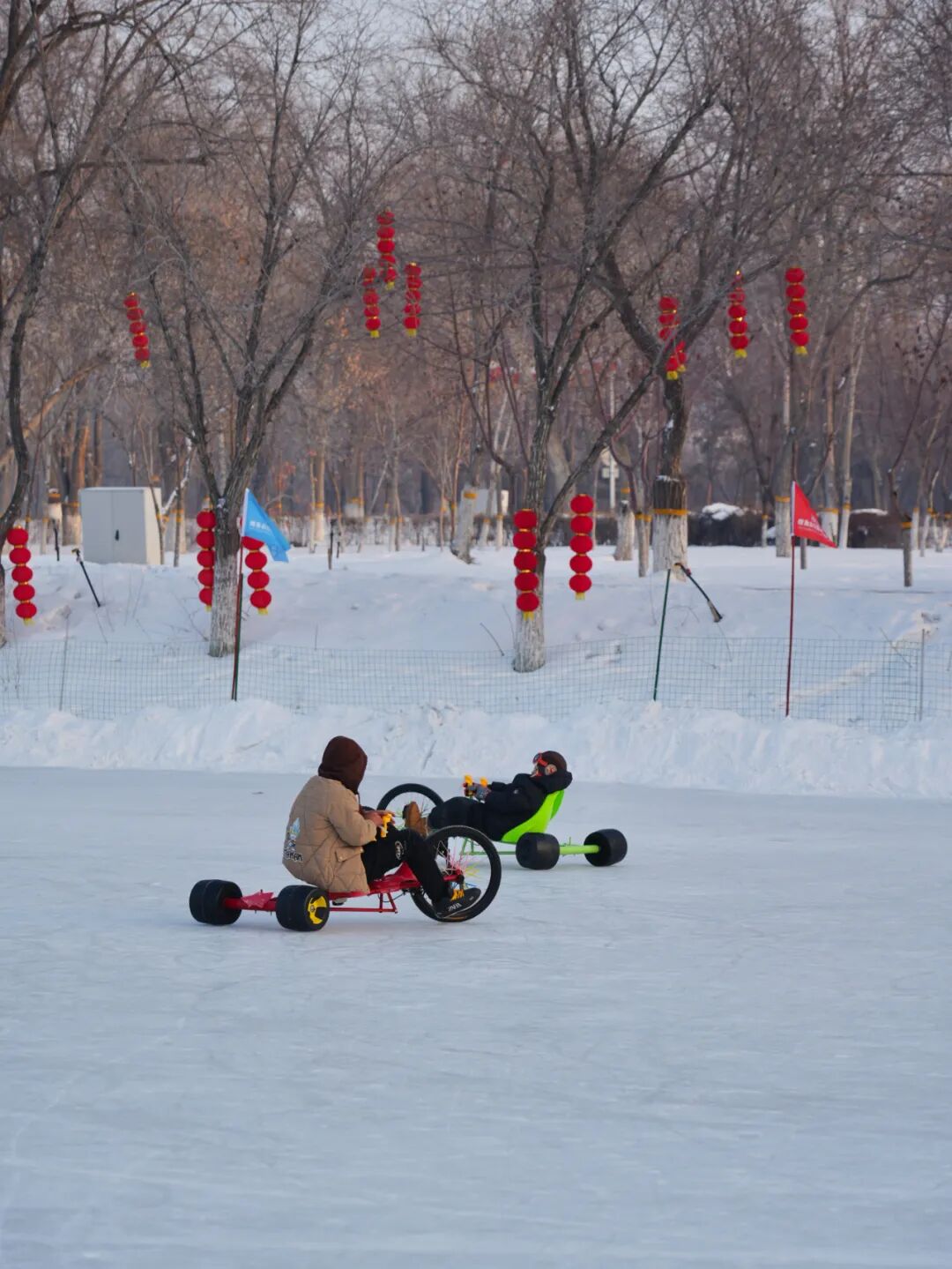 冰上自行車、折疊冰車、無動(dòng)力雪橇、冰上陀螺……冰場開闊,玩得過癮。