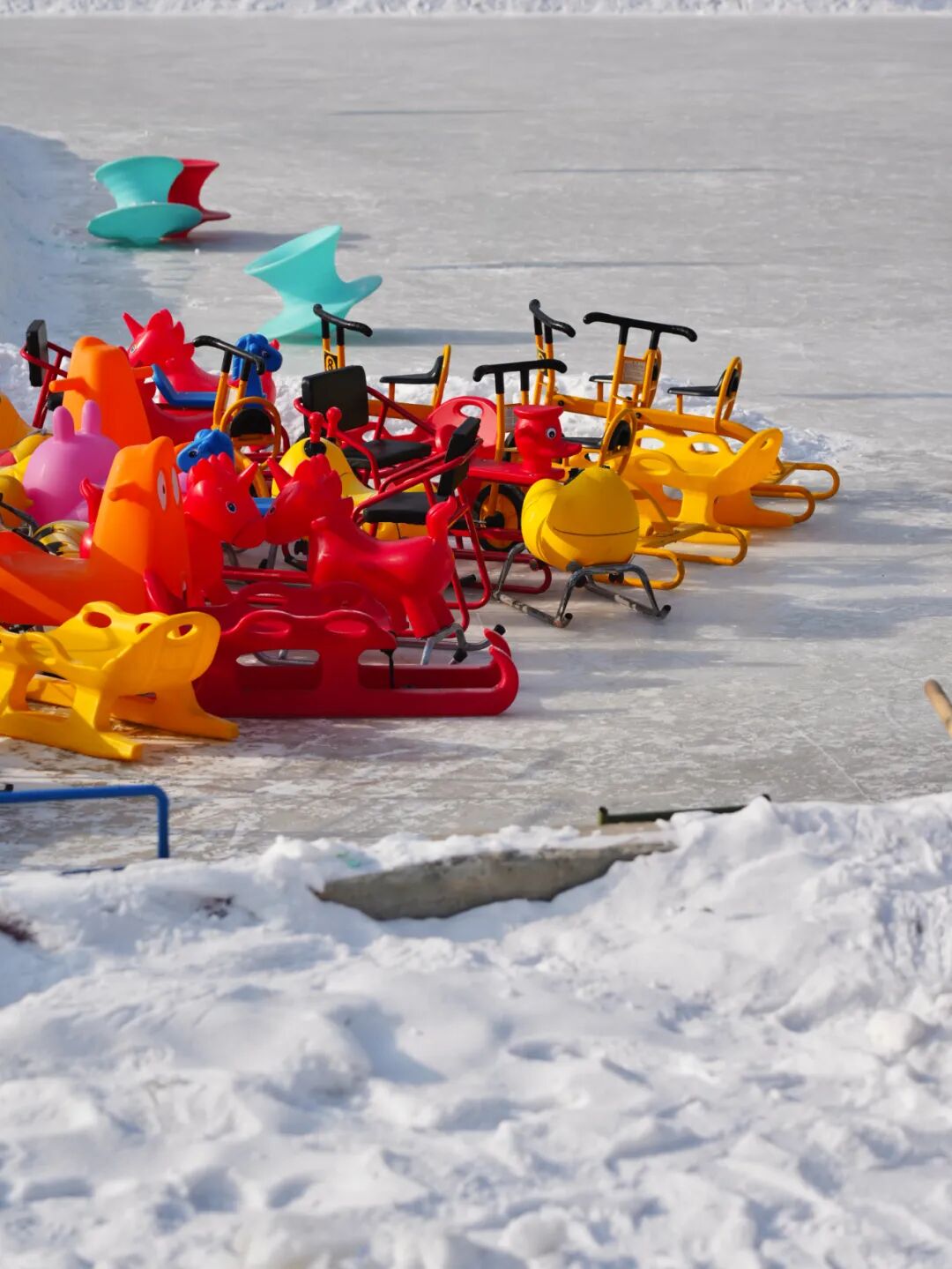 也有雪地爬犁、親子小鹿冰車等適合小齡段孩子玩的無動(dòng)力項(xiàng)目。