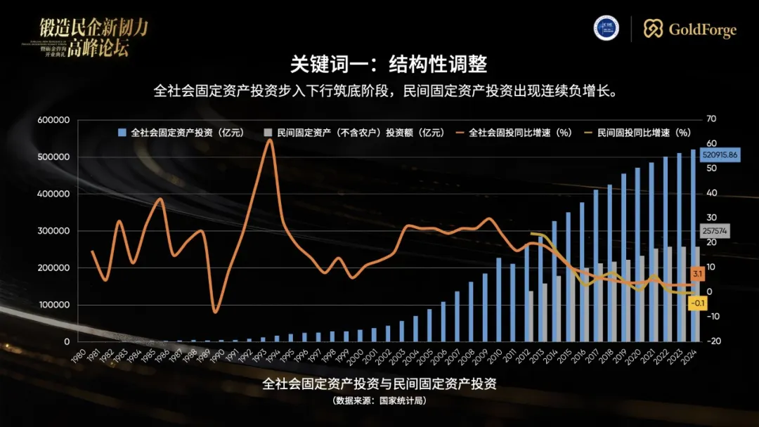 劉國宏院長展示了一組關(guān)鍵數(shù)據(jù):全國固定資產(chǎn)投資增速在2025年已轉(zhuǎn)為負增長3.8%,其中民間投資更是連續(xù)三年負增長?!翱客顿Y拉動的時代,一去不復(fù)返了。”