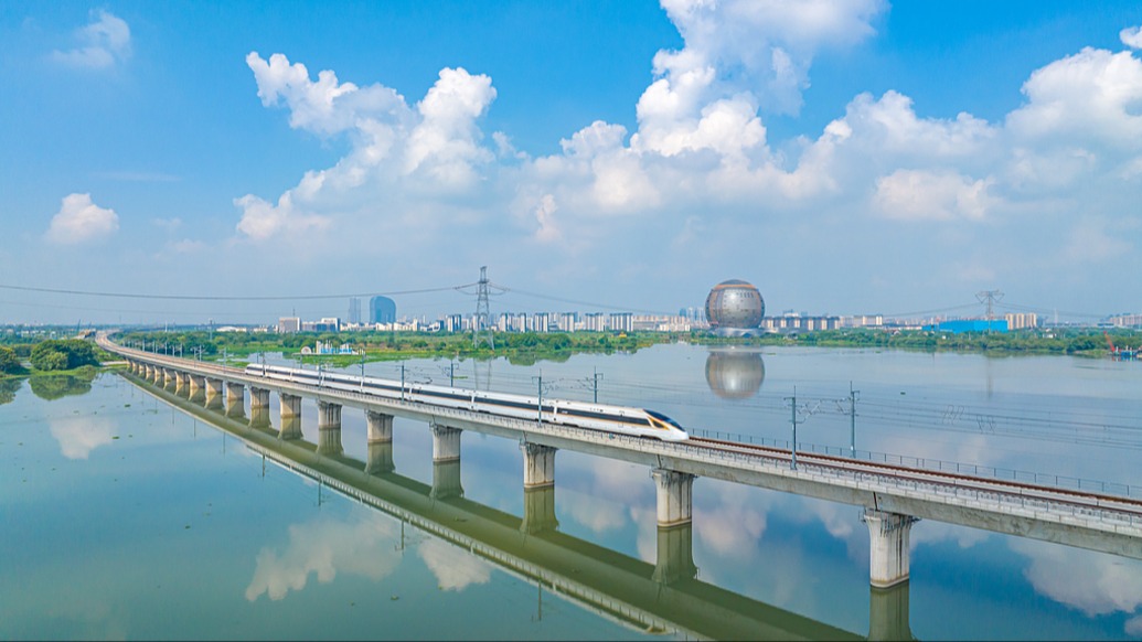 滬蘇湖高鐵列車(chē)駛過(guò)沈莊漾水域。視覺(jué)中國(guó) 資料圖
