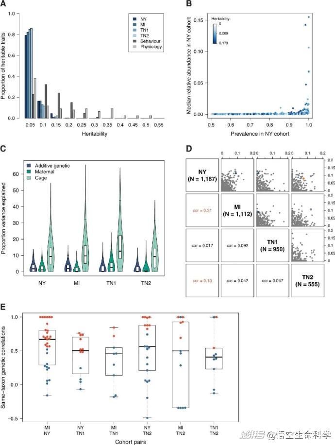 在這項研究中,科學家分析了近4000只遺傳高度多樣的大鼠,發(fā)現(xiàn):約40%的常見腸道菌,都受到宿主基因的穩(wěn)定影響;但單個菌群的“遺傳解釋度”并不高,平均只有3%左右。