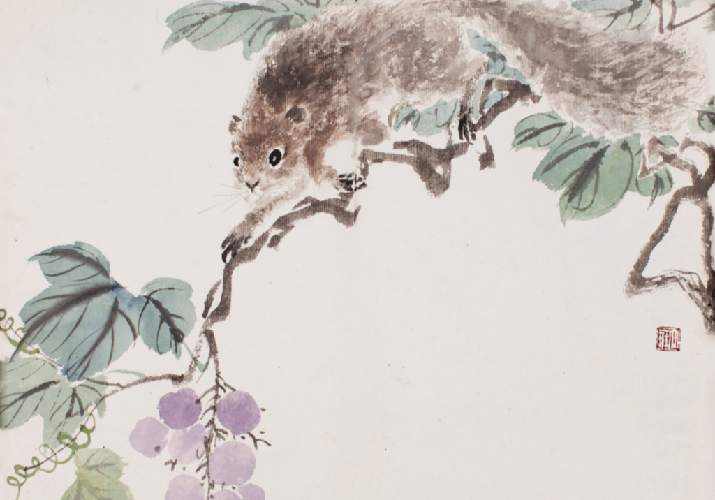 唐云的藝術(shù)特色在于他成功地將傳統(tǒng)文人畫的精髓與現(xiàn)代審美意識(shí)相結(jié)合。他的作品融華新羅之清新、金冬心之古拙、八大山人之凝練于一體,在傳統(tǒng)文人畫的框架中注入了鮮明的現(xiàn)代形式感。1985年創(chuàng)作的《松鼠》筆簡(jiǎn)意豐,“松鼠不知何處下,逗人如欲躍窗來(lái)”的題詩(shī)讓畫面更添生趣,展現(xiàn)了他晚年?duì)t火純青的藝術(shù)造詣。
