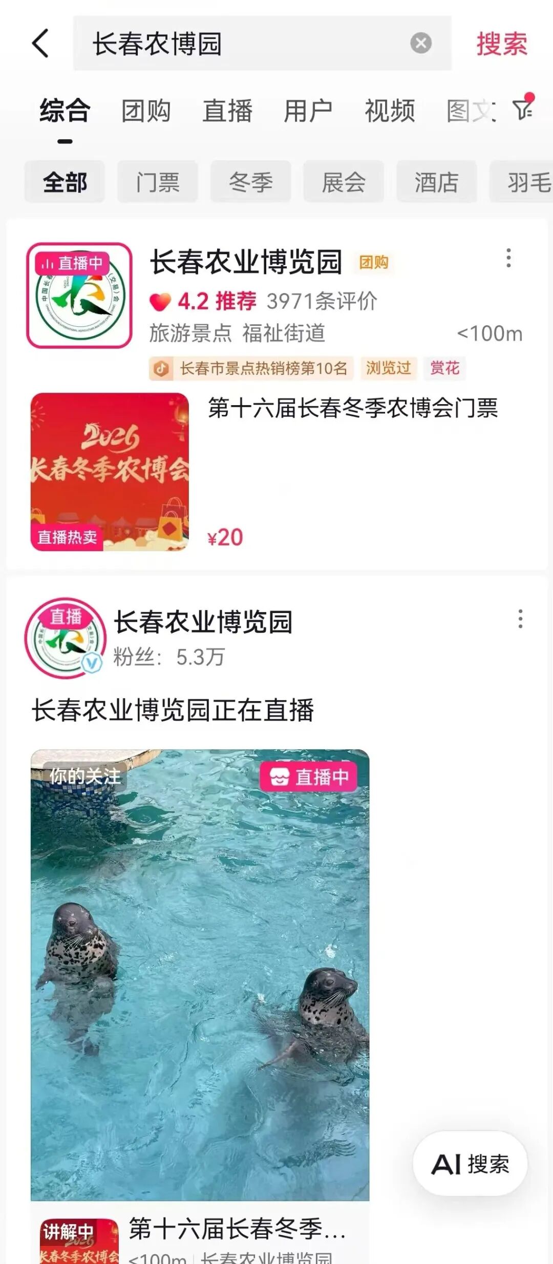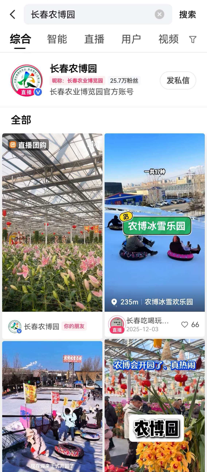 登錄快手APP,搜索“長(zhǎng)春農(nóng)博園”并關(guān)注,在直播間或團(tuán)購(gòu)鏈接中均可購(gòu)票。