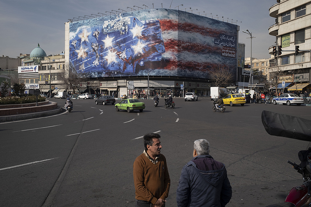 當(dāng)?shù)貢r間2026年1月27日,伊朗德黑蘭,恩格拉布廣場巨型廣告牌上,出現(xiàn)了一幅新的壁畫,內(nèi)容是直接警告美國不要試圖對伊朗發(fā)動軍事打擊。視覺中國 資料圖