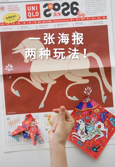 優(yōu)衣庫以馬年限定海報為媒介,在小紅書等社交場域構建了一個高活躍度的互動空間,把“陪伴大家奔向愛”的宏大敘事,落在了更日常、高頻的觸點上:消費者可在全國門店免費領取海報,參與填色游戲,或將其二次創(chuàng)作為折紙小馬與日歷,還能解鎖更多“海報新玩法”,驅動消費者從被動接收向主動創(chuàng)造轉變。海報由此超越了單一宣發(fā)物料的范疇,成為拉近品牌與消費者的情感載體。