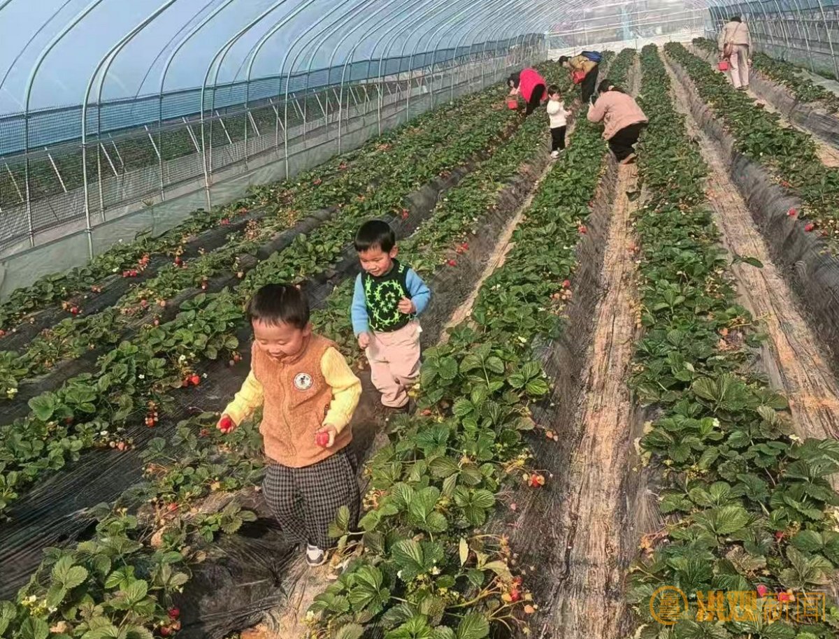 周日下午,蔣巷西大道的清逸園共享農(nóng)場里不時(shí)傳來清脆的歡笑聲。寬敞的大棚內(nèi),紅彤彤的奶油草莓綴滿藤蔓,孩子們提著紅筐在地壟間穿梭,揪下一顆顆飽滿的果實(shí)。