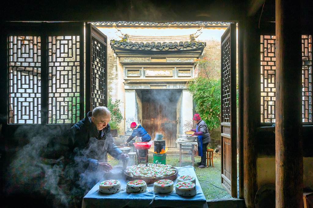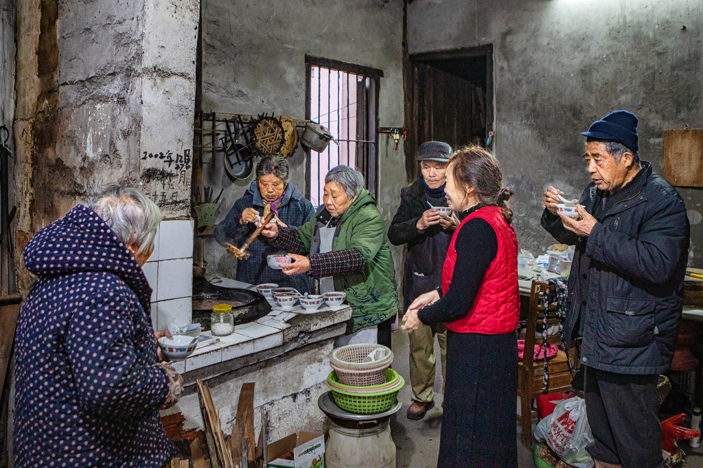 生長于嘉定婁塘的李建榮拍攝的“古建新生”“煙火桃溪”“悅度時光”三個部分,涵蓋婁塘古建筑的百年歷史和時代新貌、地道美食、婁塘民俗以及居民活動掠影等,本次展覽他帶來了嘉定的美食和民俗,展現(xiàn)了婁塘古鎮(zhèn)650多年的厚重歷史。