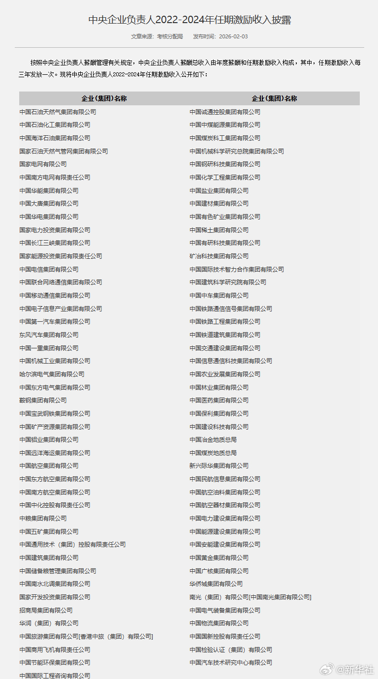 據(jù)國務院國有資產監(jiān)督管理委員會網站,按照中央企業(yè)負責人薪酬管理有關規(guī)定,中央企業(yè)負責人薪酬總收入由年度薪酬和任期激勵收入構成,其中,任期激勵收入每三年發(fā)放一次?,F(xiàn)將中央企業(yè)負責人2022-2024年任期激勵收入公開?!?a >詳情】