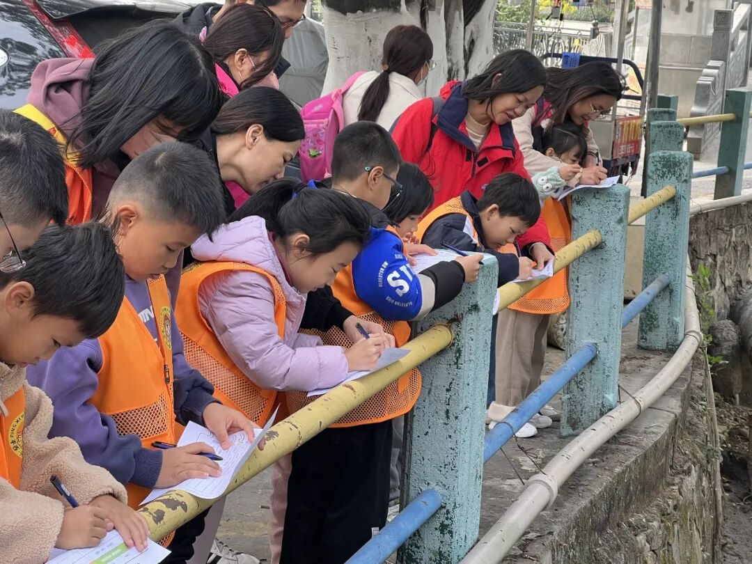 “河小青”的小小巡河員們?cè)谟涗浰|(zhì)情況。