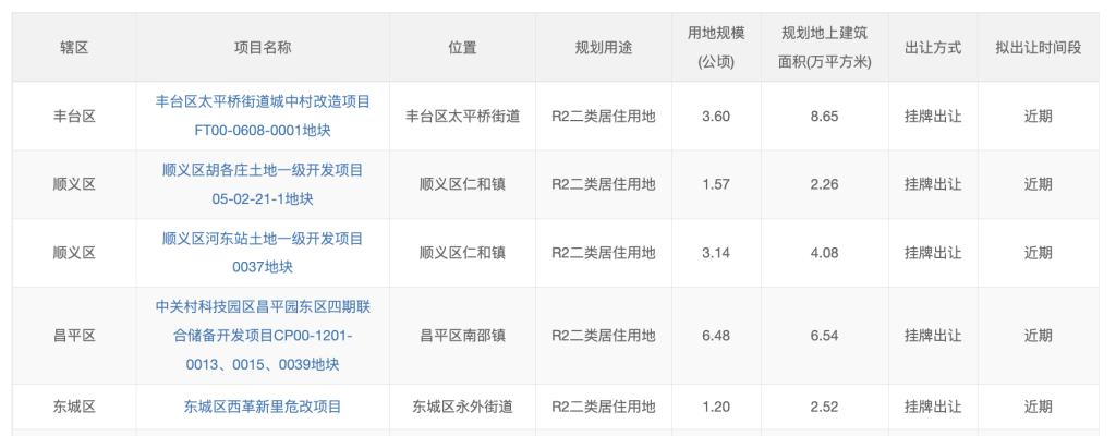北京發(fā)布今年第一輪擬供商品住宅用地清單,共5宗16公頃