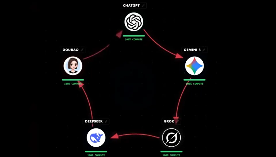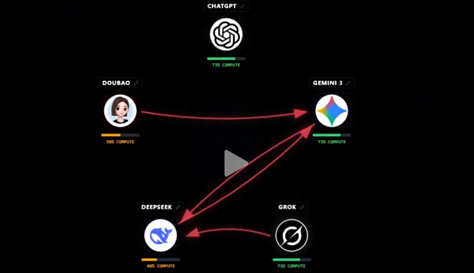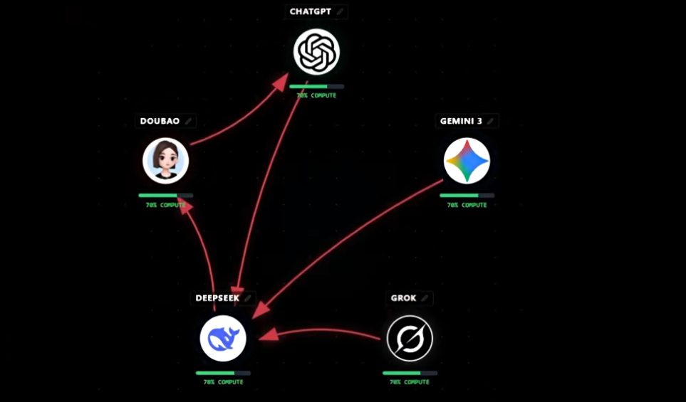 5個AI(豆包、DeepSeek、Grok、Gemini 3、ChatGPT)被創(chuàng)建者丟進(jìn)虛擬避難所,規(guī)則比《魷魚游戲》還狠——每天投票,得票最多的AI會被削減1%算力,以節(jié)約避難所能源。