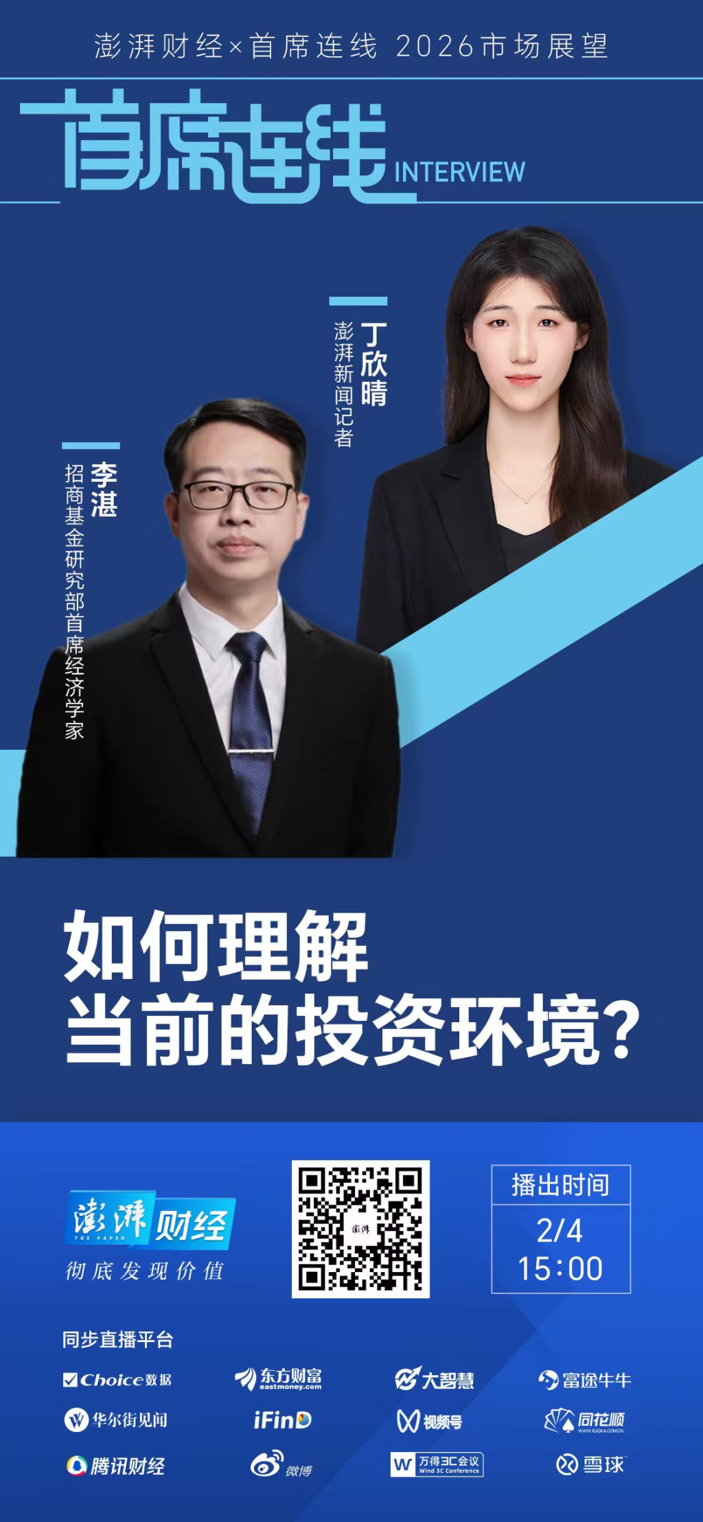 “展望2026年,中國市場有望告別單一估值修復(fù),邁入‘盈利改善+估值抬升’的雙重驅(qū)動階段?!?月4日,招商基金研究部首席經(jīng)濟學(xué)家李湛做客澎湃新聞“春水向東流——《首席連線》2026年市場展望”專題時表示,相較之下,外需不確定性是最大變數(shù),也最可能成為影響2026年市場的關(guān)鍵變量。