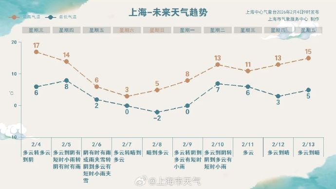 市區(qū)徐家匯站目前最高氣溫已達16.9℃,成為近80年來最暖的一個立春日。此前1946年2月4日最高氣溫曾達18.9℃。大回暖后更需注意提防氣溫驟降,周五上海氣溫將狂降至6℃以下。