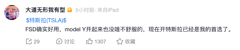 2月4日,知名投資人、步步高創(chuàng)始人段永平在網(wǎng)絡(luò)平臺上通過其個人賬號“大道無形我有型”發(fā)文稱,“FSD確實好用,Model Y開起來也沒啥不舒服的,現(xiàn)在開特斯拉已經(jīng)是我的首選了?!?/p>