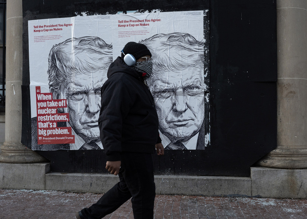 當?shù)貢r間2026年1月30日,美國華盛頓哥倫比亞特區(qū),一名男子走過一張墻壁海報,海報警告新《削減戰(zhàn)略武器條約》即將到期。視覺中國 圖