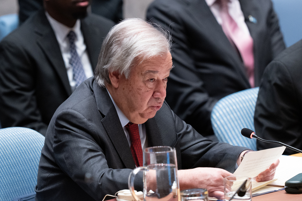 當?shù)貢r間2026年1月26日,美國紐約,聯(lián)合國總部,聯(lián)合國秘書長古特雷斯在安理會關于“促進和加強法治以維護國際和平與安全”的會議上發(fā)表講話。視覺中國 圖